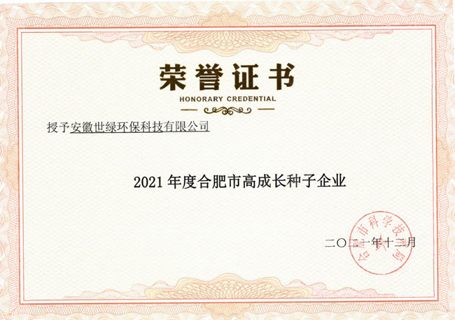 2021年合肥市高成長企業(yè)認定結(jié)果正式出爐啦!近日,合肥市科技局委托各區(qū)管委會,對認定企業(yè)發(fā)放了認定證書。安徽世綠環(huán)保榮獲2021年合肥市高成長種子企業(yè)。